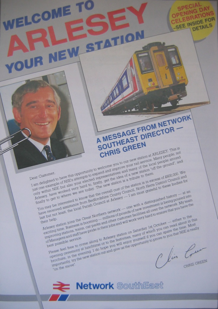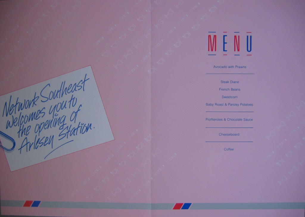 The new Arlesey station was opened by NSE on 1st October 1998. Click the leaflet to the right for a readable version. Click the menu to see the food.